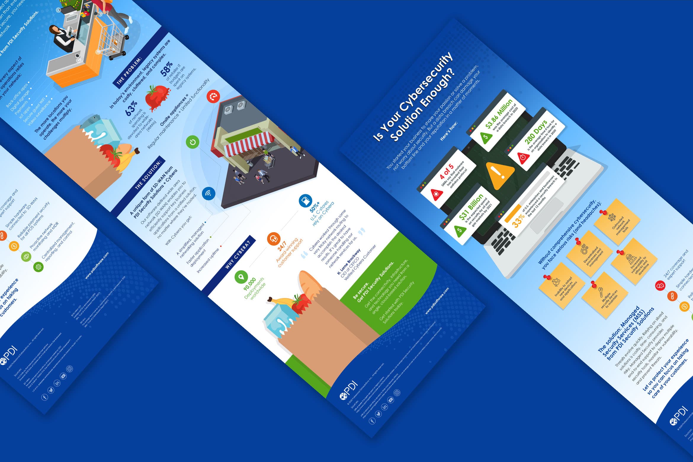 PDI Security Cloud is purpose-built to simplify security among a wide range of networks, technologies, and locations. It helps you scale your ecosystem securely while minimizing vulnerability, optimizing your network performance, and deploying necessary security applications to help you manage from a centralized location no matter how many applications or locations you support.